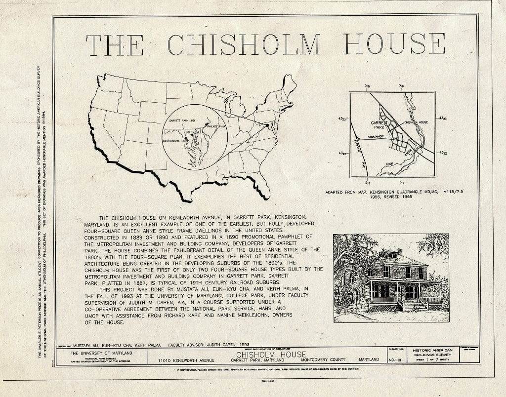 Blueprint HABS MD,16-GARPK,1- (Sheet 1 of 7) - Chisholm House, 11010 Kenilworth Avenue, Garrett Park, Montgomery County, MD