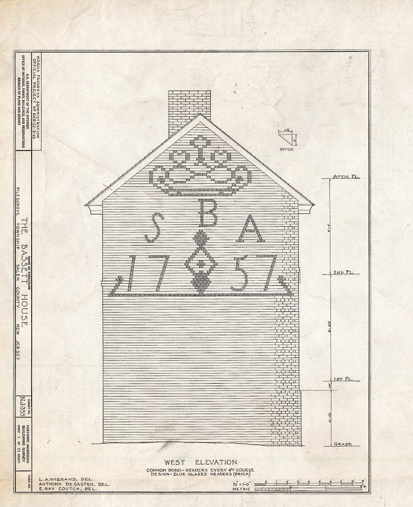 Blueprint HABS NJ,17-WOOTO.V,3- (Sheet 1 of 21) - Samuel & Anne Bassett House, Woodstown, Salem County, NJ