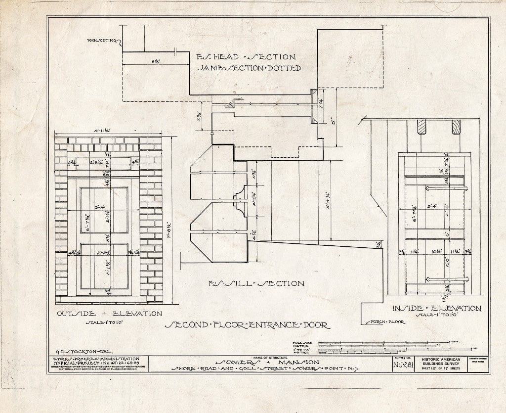 Historic Pictoric : Blueprint HABS NJ,1-SOMPO,1- (Sheet 15 of 17) - Somers Mansion, Shore Road & Goll Street, Somers Point, Atlantic County, NJ