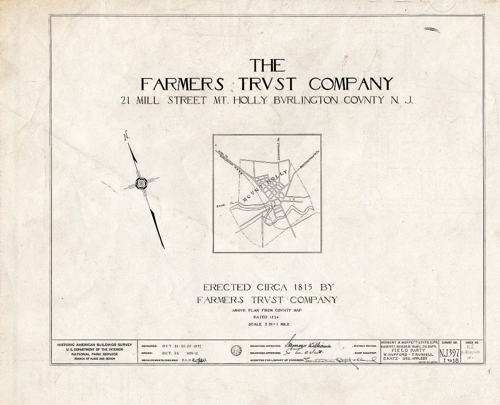 Historic Pictoric : Blueprint HABS NJ,3-MOUHO,10- (Sheet 0 of 18) - Farmer's Trust Company Bank Building, 21 Mill Street, Mount Holly, Burlington County, NJ