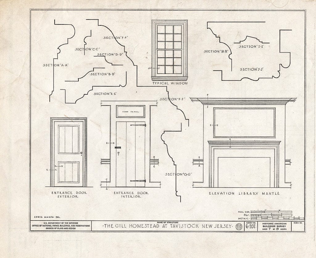 Historic Pictoric : Blueprint HABS NJ,4-TAV,1- (Sheet 7 of 9) - Gill Homestead at Tavistock, Tavistock, Camden County, NJ