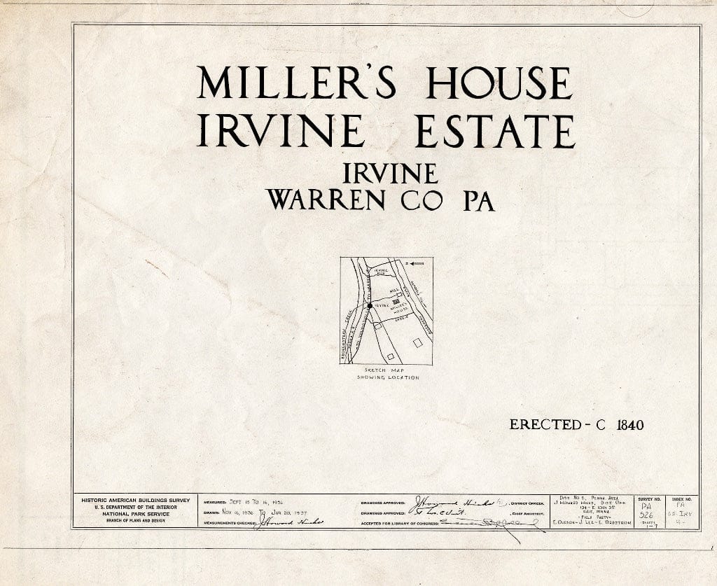 Blueprint HABS PA,62-IRV,2B- (Sheet 0 of 7) - Irvine Estate, Miller's House, Irvine, Warren County, PA