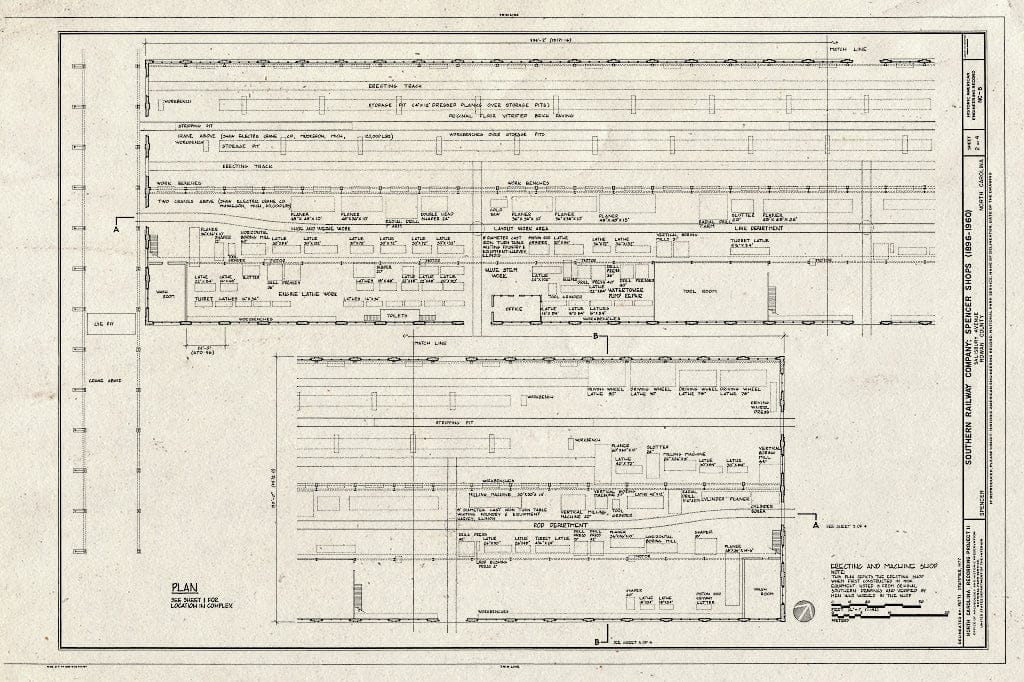 Historic Pictoric : Blueprint Plan, Erecting and Machine Shop - Southern Railway Company, Spencer Shops, Salisbury Avenue Between Third and Eight Streets, Spencer, Rowan County, NC