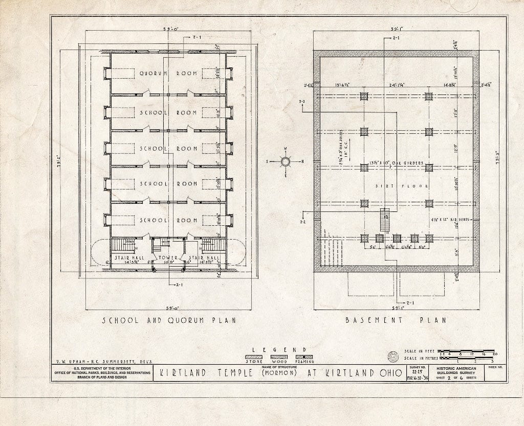 Blueprint School and Quorum Plan, Basement Plan - Kirtland Temple (Mormon), 9020 Chillicoth Road, Kirtland, Lake County, OH