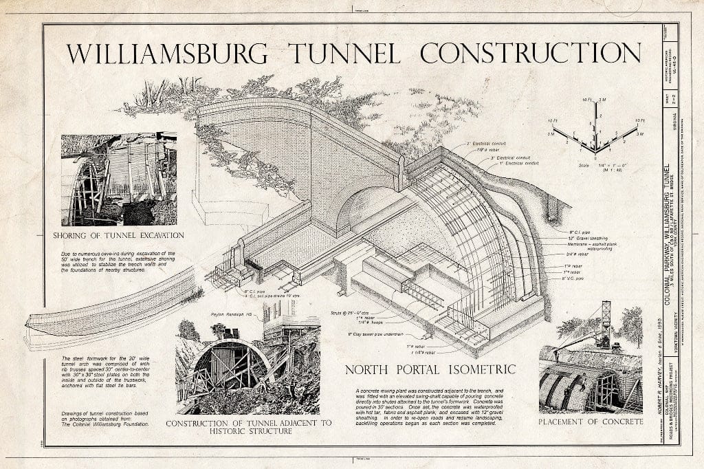 Blueprint 2. Williamsburg Tunnel Construction - Colonial Parkway, Williamsburg Tunnel.3 Mile South of C&O Railroad underpass, Yorktown, York County, VA
