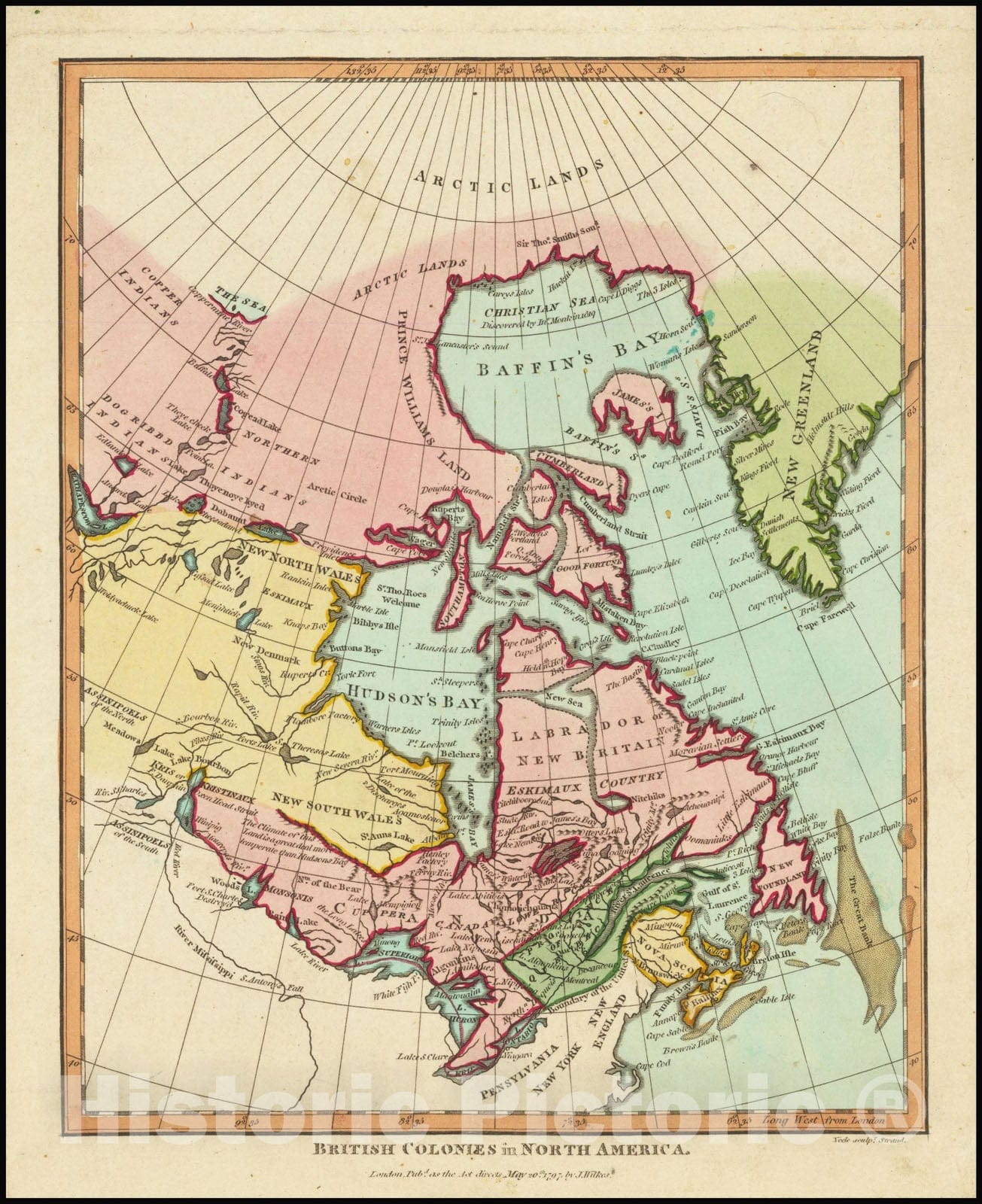 • .Historic Map : British Colonies in North America, 1797, Vintage Wall Art