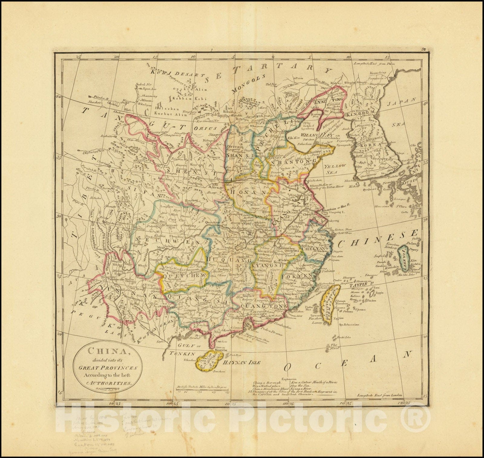 Historic Map : China, divided into its Great Provinces, According to the best Authorities, 1814, Vintage Wall Art