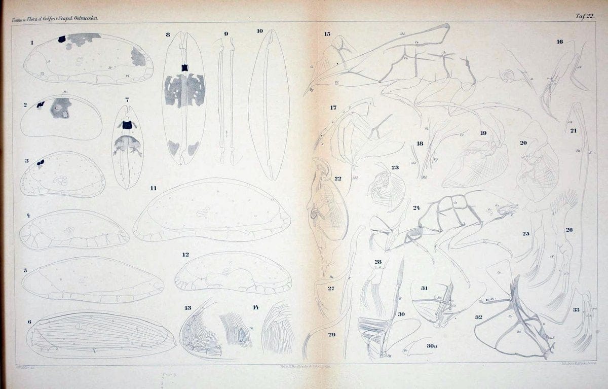 Die ostracoden des golfes von Neapel und der angrenzenden meeres-abschnitte.Berlin,R. Friedlander,1894..||