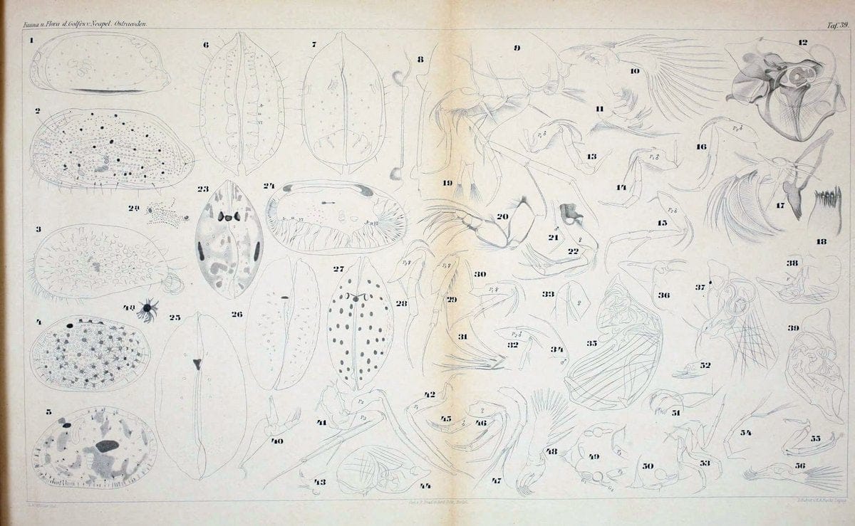Die ostracoden des golfes von Neapel und der angrenzenden meeres-abschnitte.Berlin,R. Friedlander,1894..||