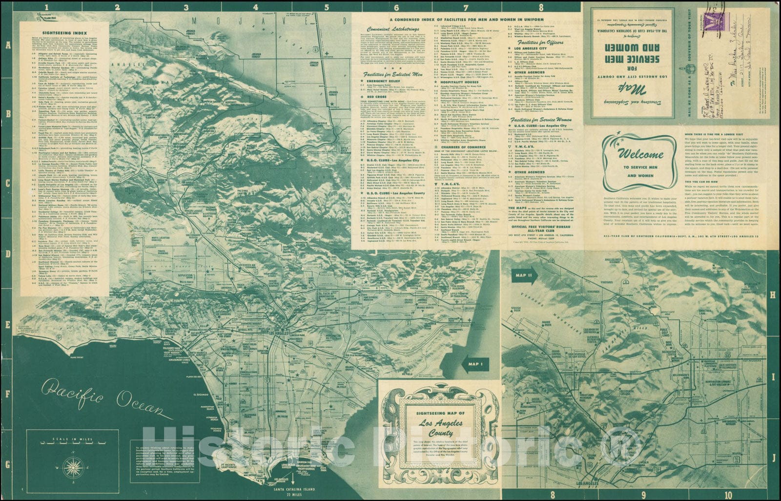 Historic Map : Discovery and Sightseeing Los Angeles City and County for Service Men and Women - Sightseeing Los Angeles County , 1944, Vintage Wall Art
