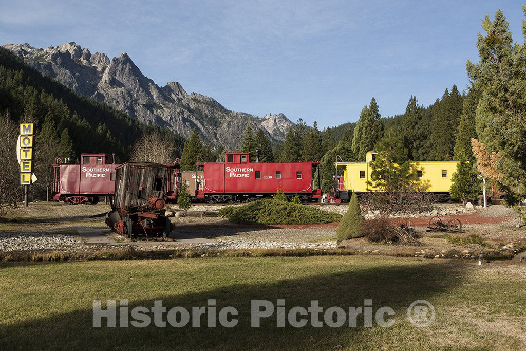 • Dunsmuir, CA Photograph - Train Cars at Rail Road Park, an Unusual Motel and Resort Complex in which Guests May Opt to Stay and Sleep in a Caboose or Other Restored, Antique Railroad car.