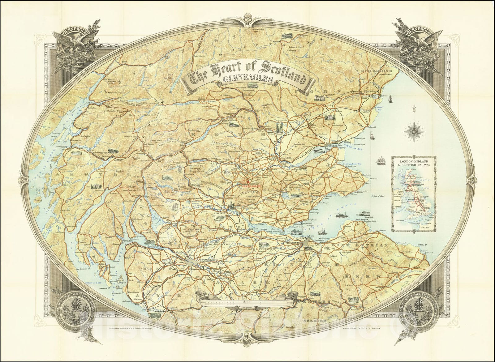 Historic Map : The Heart of Scotland -- Gleneagles, Vintage Wall Art