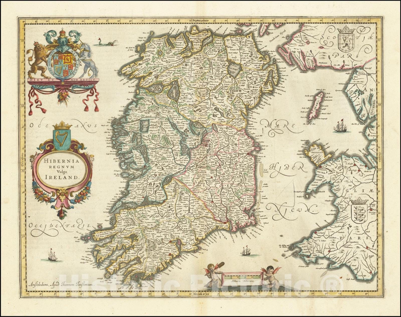 Historic Map : Hibernia Regnum Vulgo Ireland, 1640, Vintage Wall Art