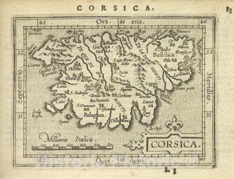 Historic 1603 Map - Corsica. - Norway - Corsica (France) - Abraham Ortelius His Epitome Of The Theater Of The Worlde. - Vintage Wall Art