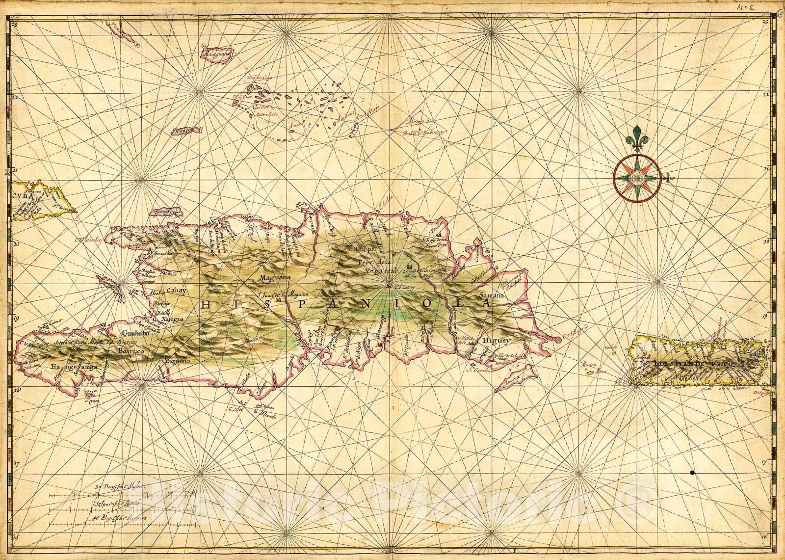 Historic 1639 Map - Map of The Islands of Hispaniola and Puerto Rico