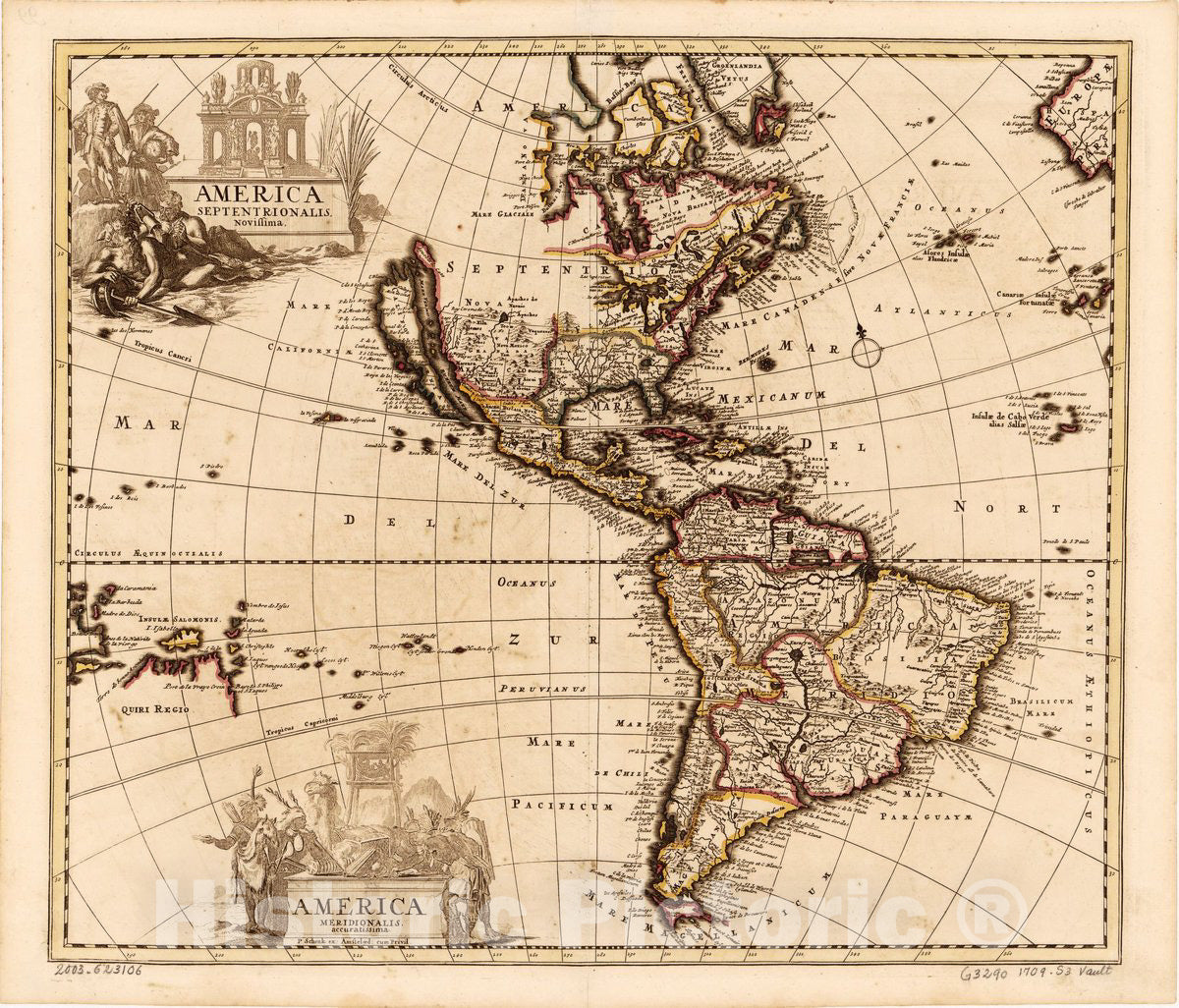 Historic 1709 Map - America Septentrionalis novissima ; America Meridionalis accuratissima