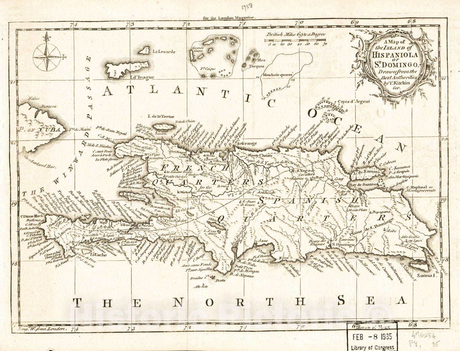 Historic 1758 Map - A map of The Island of Hispaniola or St. Domingo