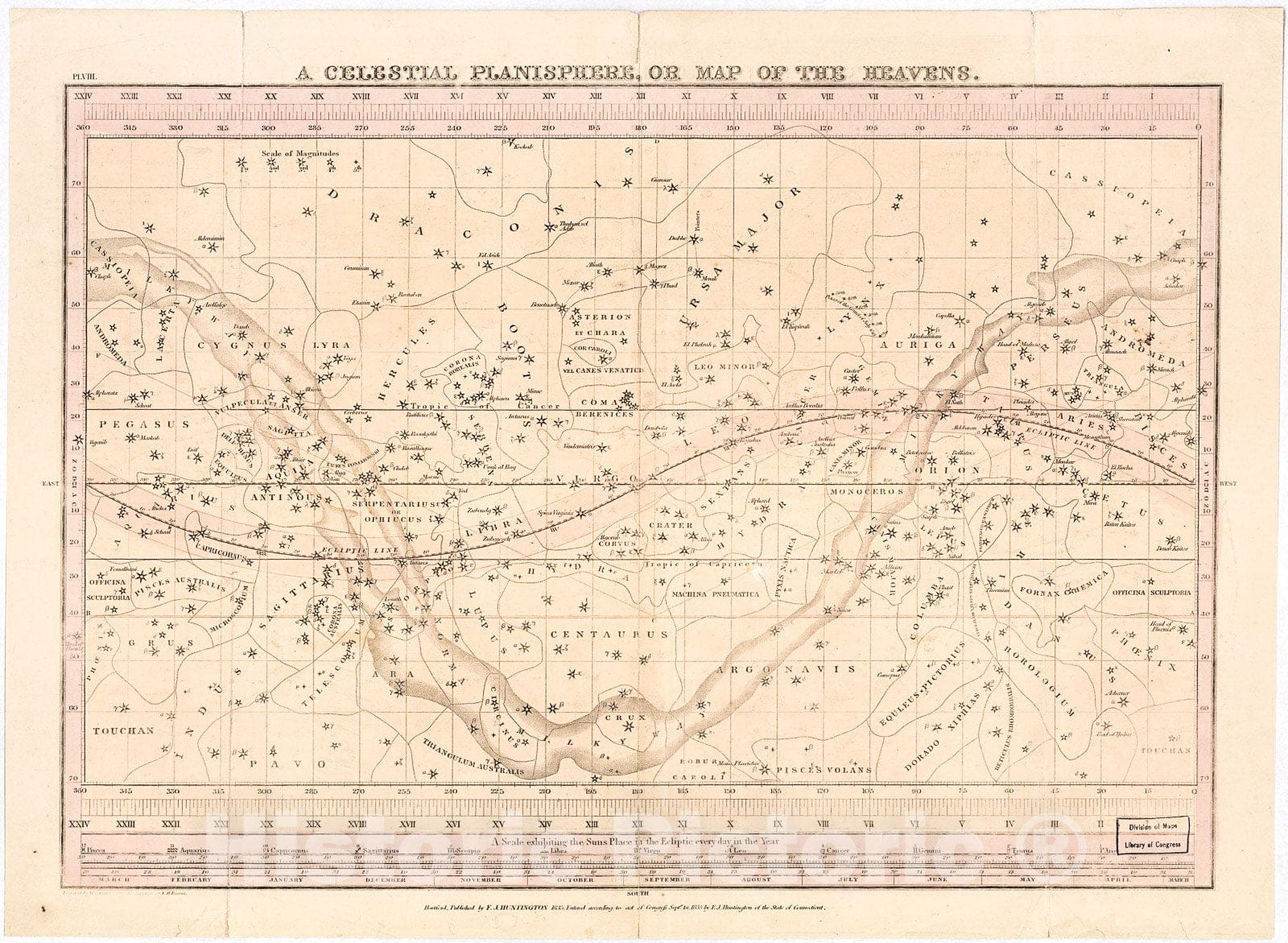 • .Historic 1835 Map - A Celestial Planisphere, or map of The Heavens