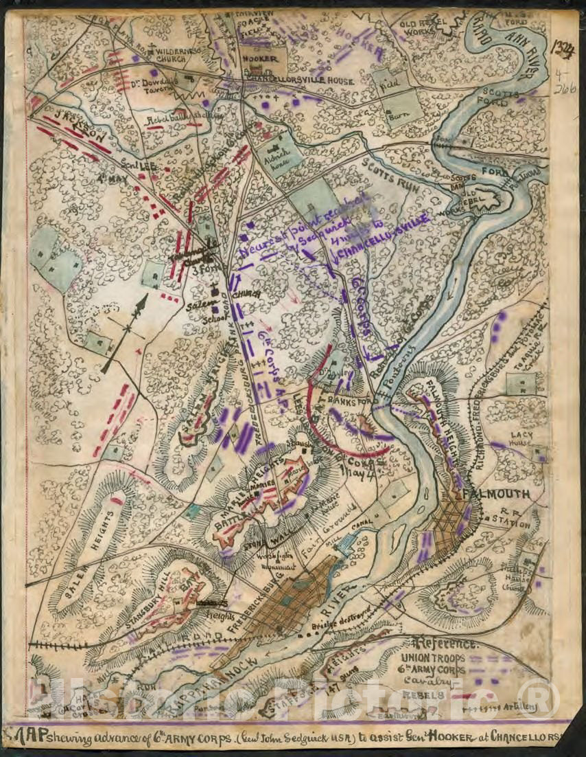 Map shewing [sic] advance of 6th Army Corps (Genl. John Sedgwick U.S.A.) to assist Gen. Hooker at Chancellorsville.