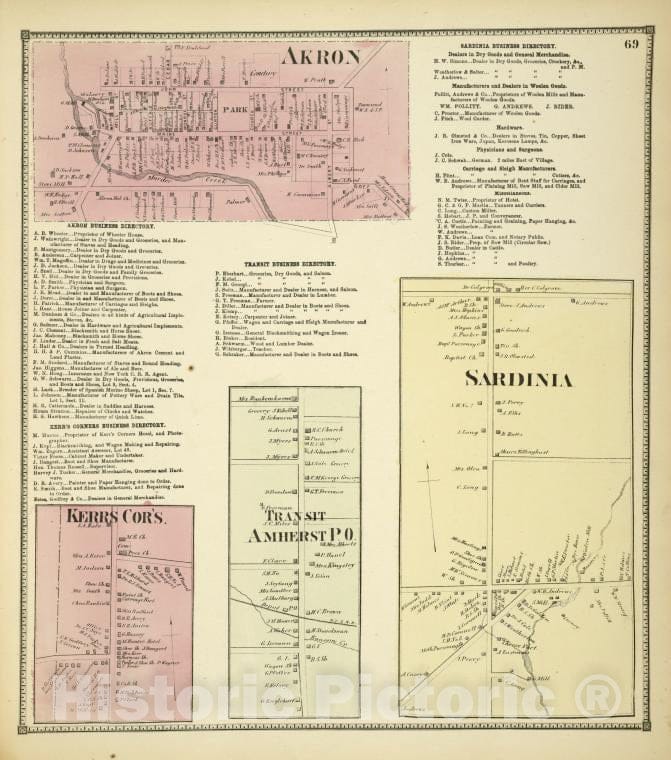 Historic 1866 Map - Akron [Village]; Akron Business Directory; Sardinia Business Dir