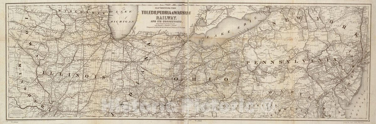 Historic 1867 Map - Map Showing The Toledo, Peoria, Warsaw Railway and its Connections, 1867.