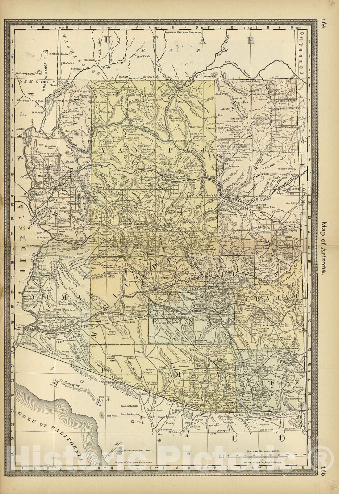 Historic 1882 Map - Historical Hand-Atlas, Illustrated - Map of Arizona - Historical Hand Atlas, Illustrated, General & Local