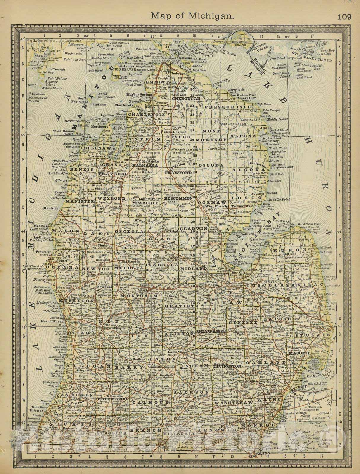 Historic 1882 Map - Historical Hand-Atlas, Illustrated - Map of Michigan - Historical Hand Atlas, Illustrated, General & Local