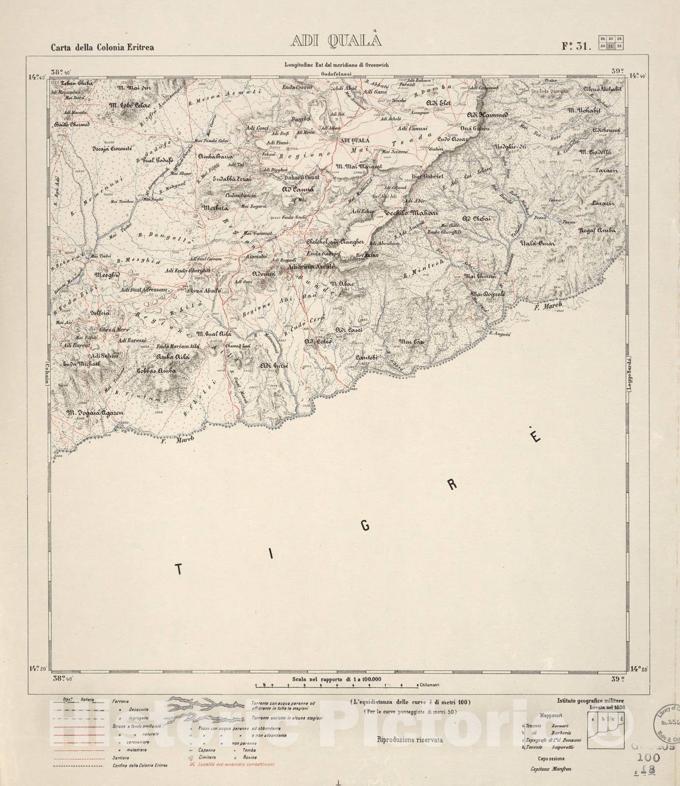 Historic 1889 Map - Carta Della Colonia Eritrea. - Adi Quala - F.31-1898