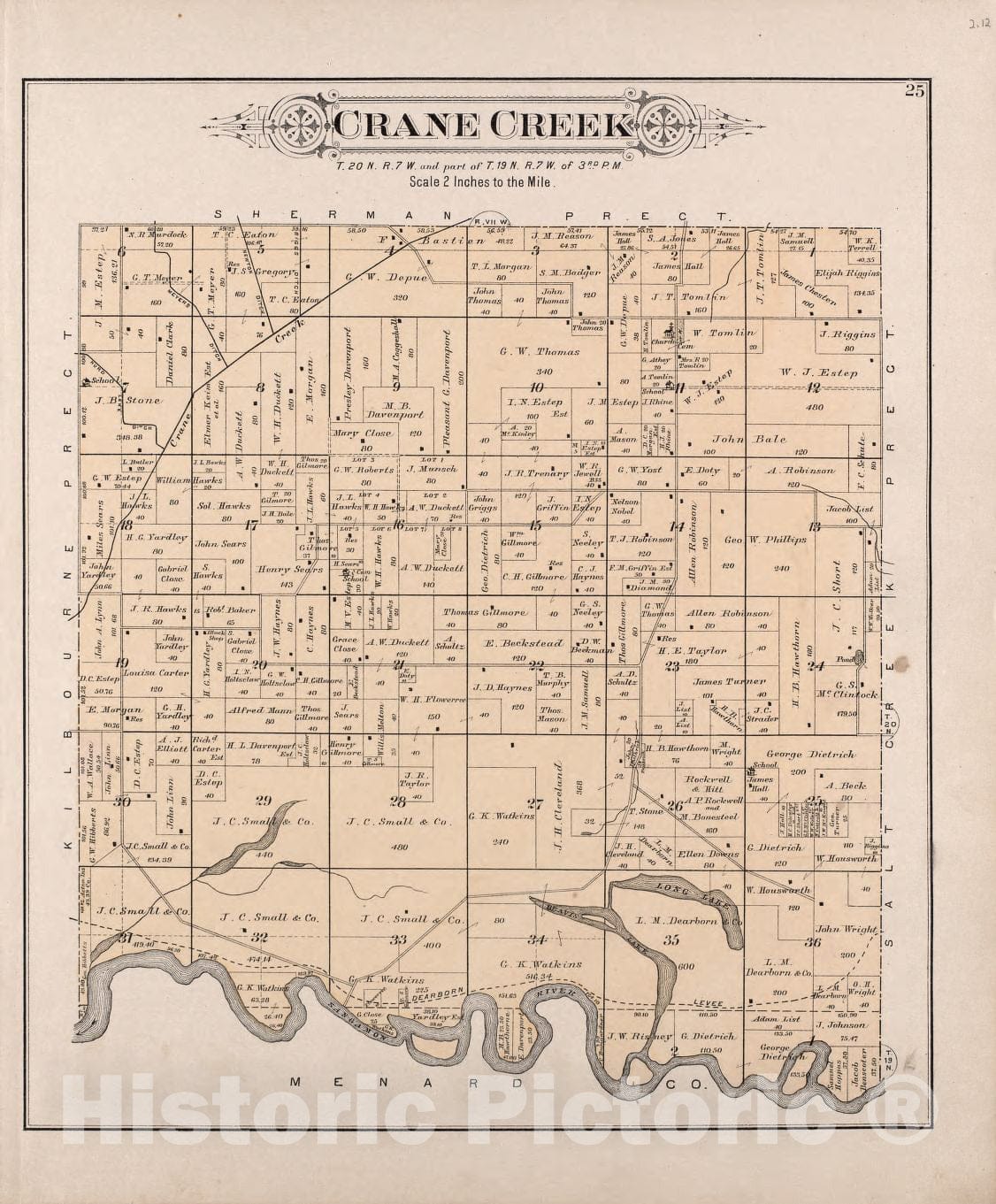 Historic 1891 Map - Plat Book of Mason County, Illinois - Crane Creek