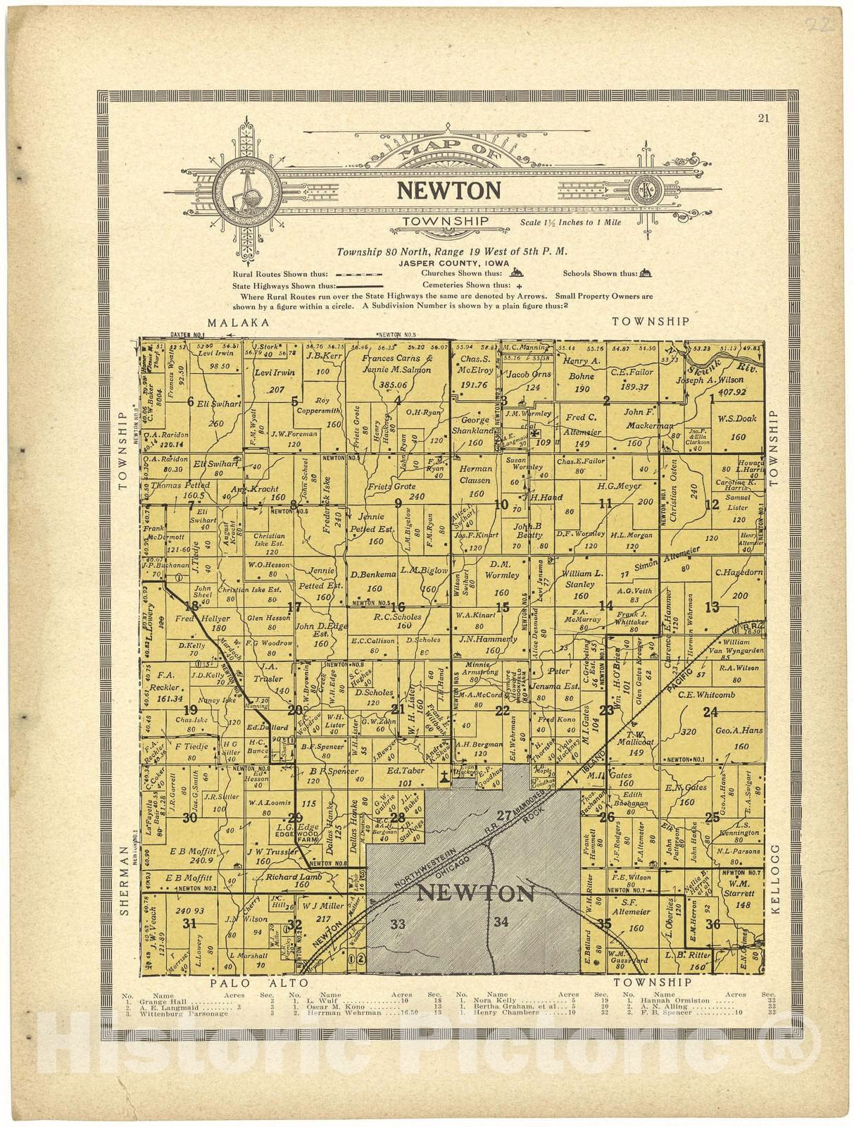 Historic 1914 Map - Atlas and plat Book of Jasper County, Iowa - Map of Newton Township - Standard Atlas and Directory of Jasper County, Iowa