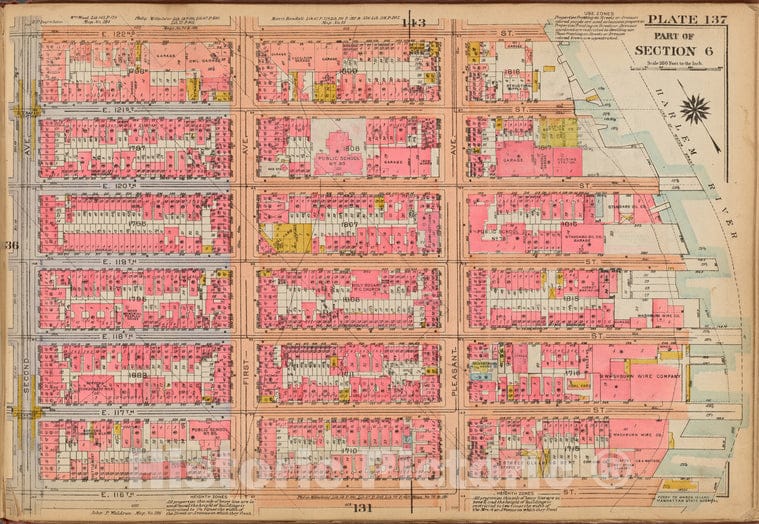 Historic 1921 Map - Plate 137: [Bounded By E. 122Nd Street, (Harlem River) Pleasant