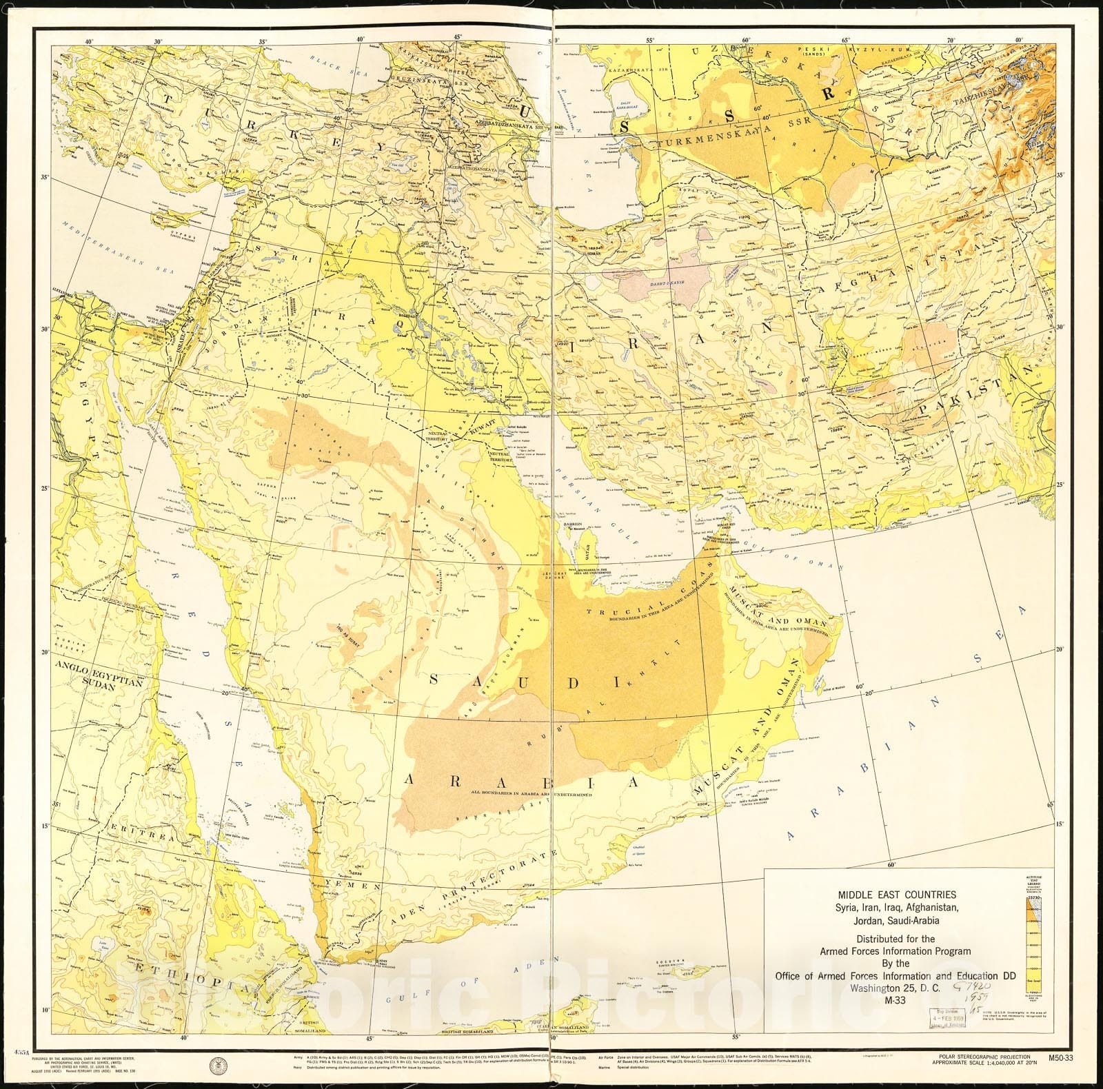 Historic 1955 Map - Middle East Countries : Syria, Iran, Iraq, Afghanistan, Jordan, Saudi-Arabia