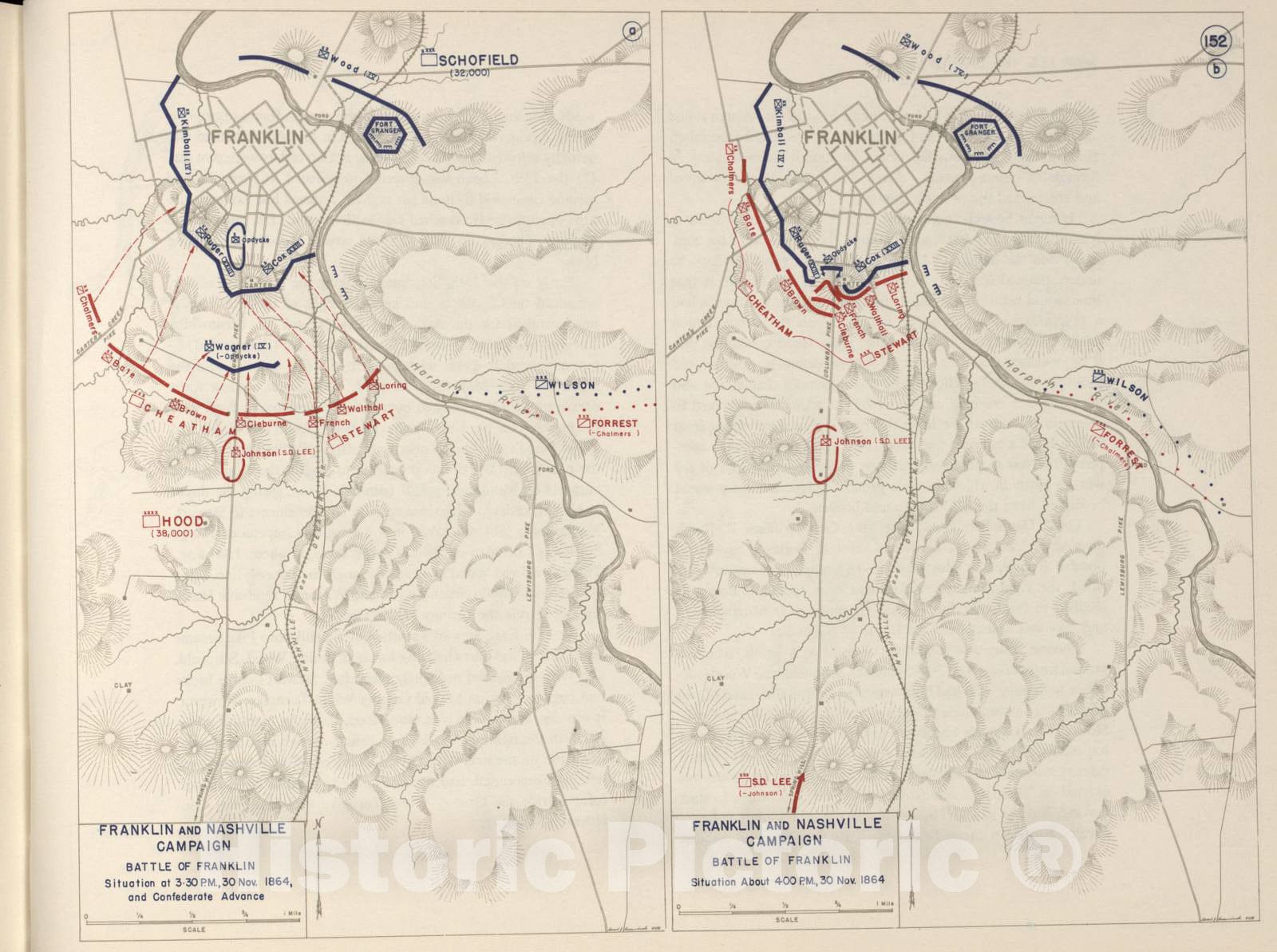 Historic 1962 Map - The West Point Atlas of The Civil War - Franklin and Nashville Campaign, Battle of Nashville, Dec. 1864