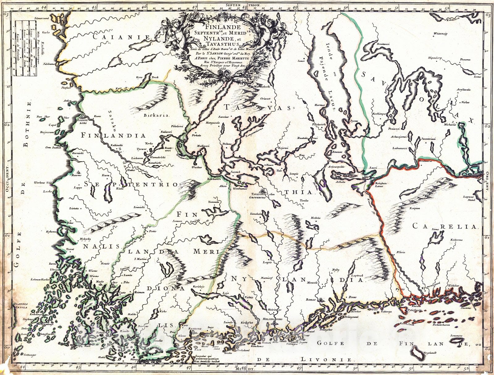 Vintage Map | 1666 Finlande le Septentr'le, et Merid'le Nylande, et Tavasthus | Sanson, Nicolas