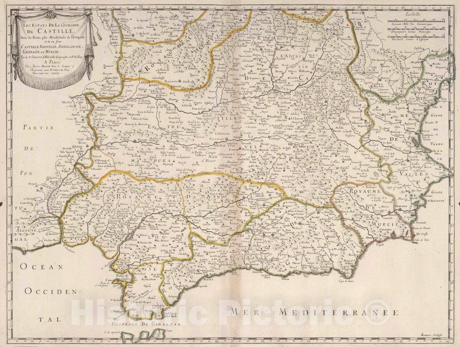 Historic Map : 1703 Estates of the Crown of Castile, Spain. - Vintage Wall Art
