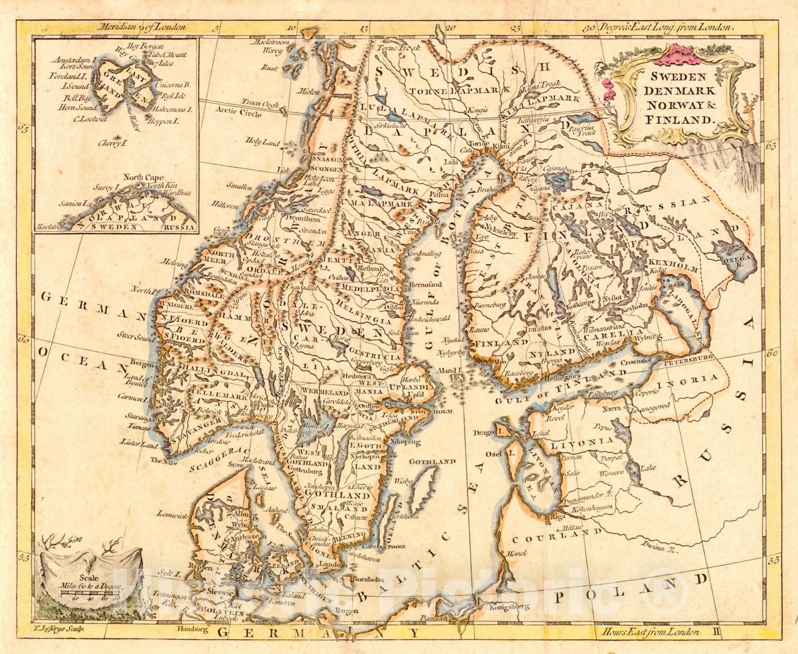 Historic Map : 1760 Sweden, Denmark, Norway, & Finland : Vintage Wall Art