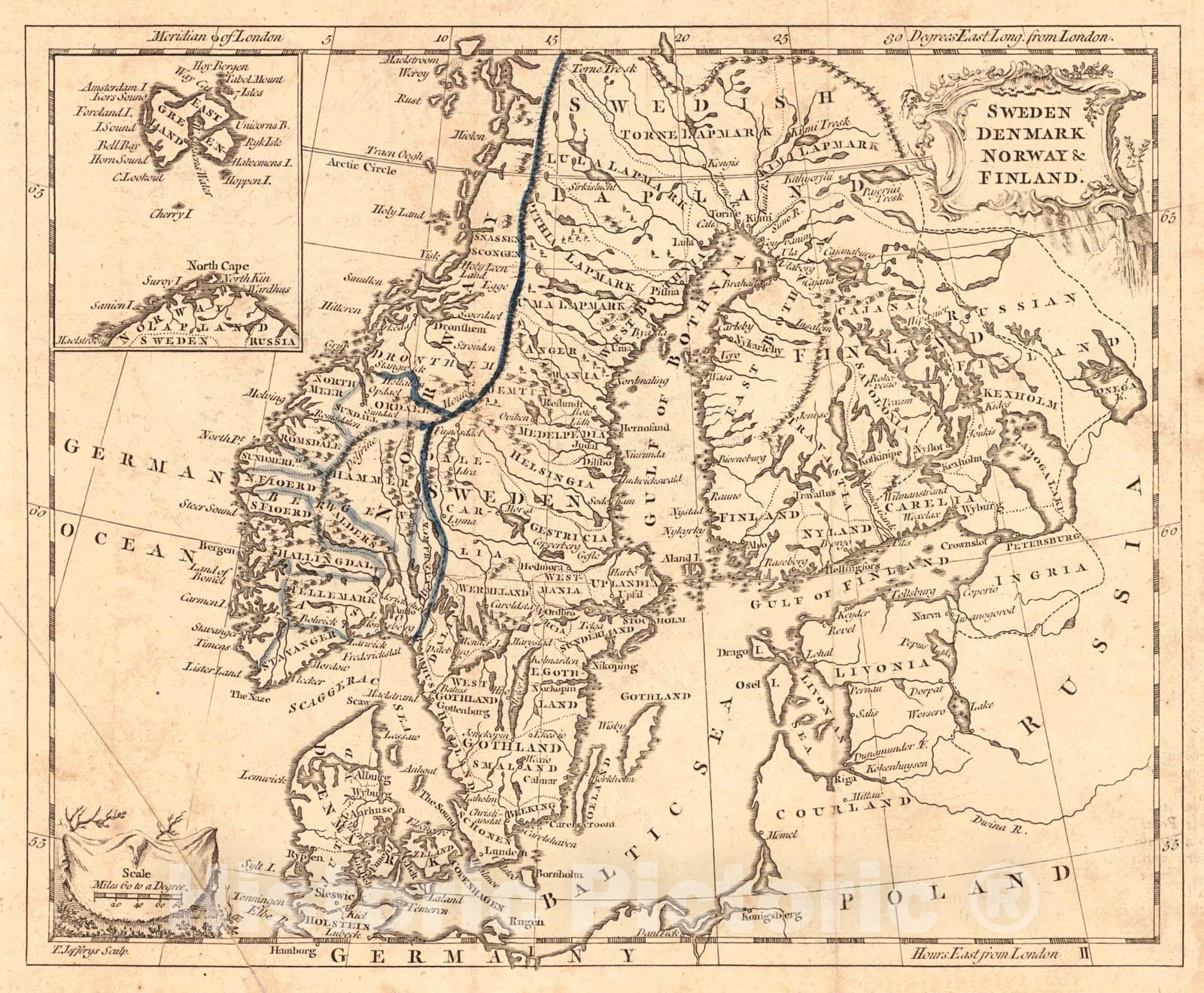 Vintage Map | 1763 Sweden, Denmark, Norway, & Finland | Jefferys, Thomas