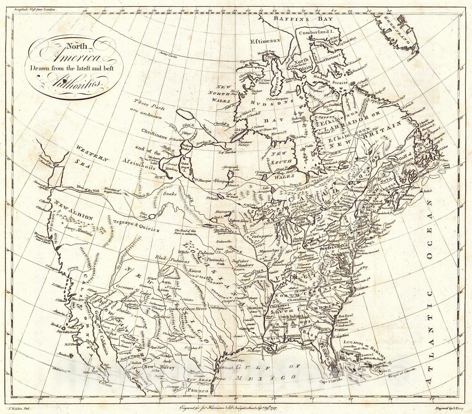 Historic Map : 1787 North America : Vintage Wall Art