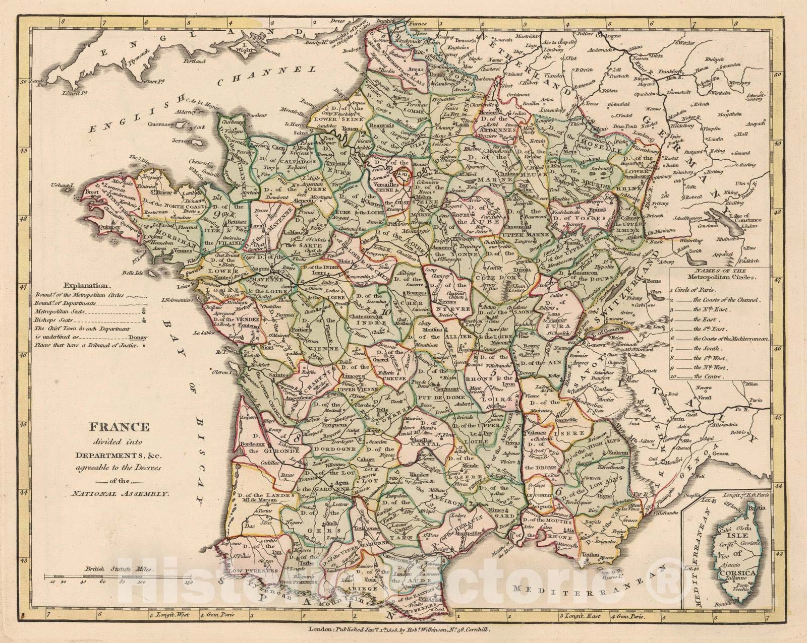 Historic Map : 1805 France Divided into Departments. - Vintage Wall Art