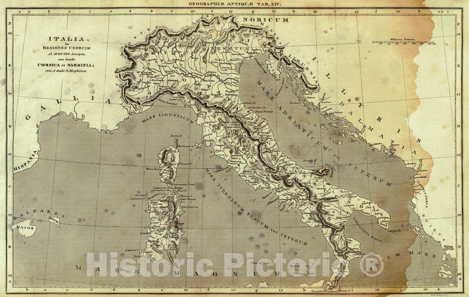 Historic Map : 1806 Italia in Regiones Undecim ab Augusto descripta cum Insulis Corsica et Sardinia : Vintage Wall Art