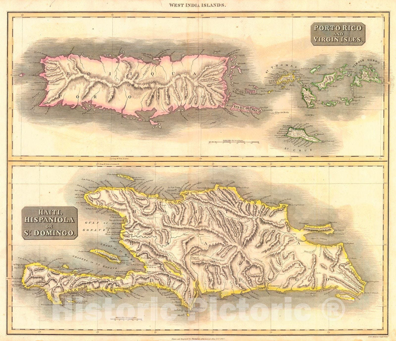 Historic Map : 1815 Porto Rico and Virgin Isles - Haiti, Hispaniola or St. Domingo : Vintage Wall Art