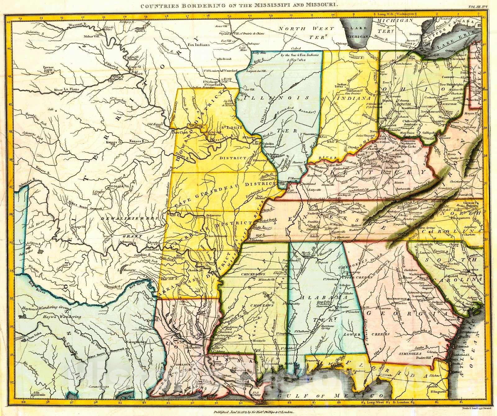Historic Map : 1821 Countries Bordering on the Mississippi and Missouri : Vintage Wall Art