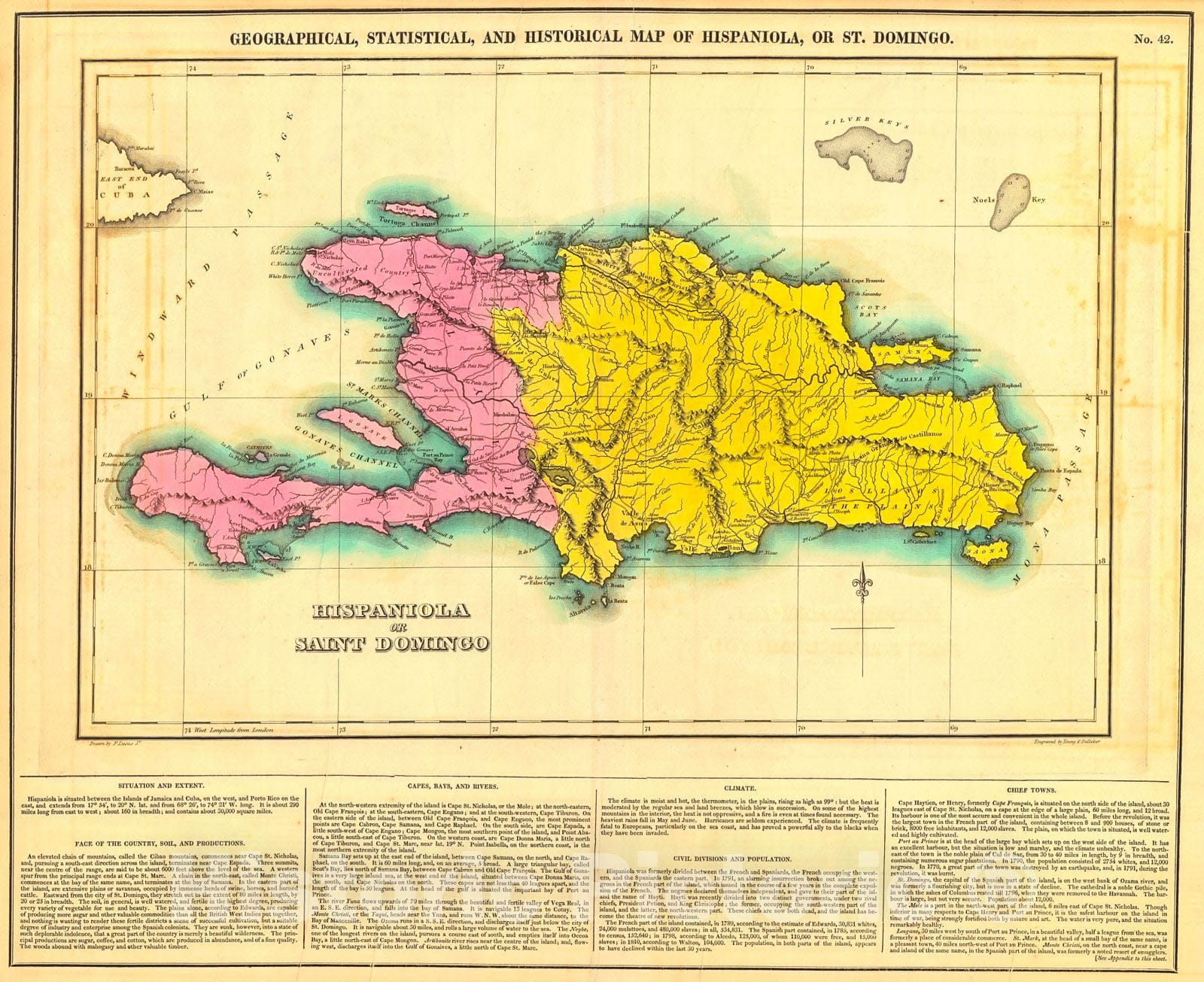 Historic Map : 1825 Geographical, Statistical, and Historical Map of Hispaniola, or St. Domingo : Vintage Wall Art