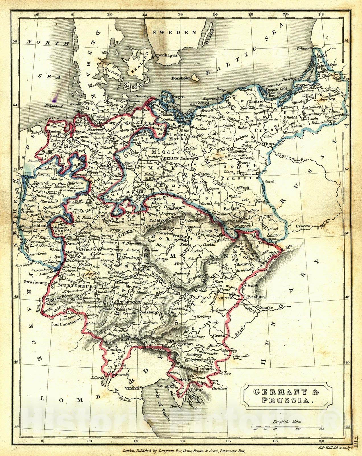 Historic Map : 1830 Germany and Prussia : Vintage Wall Art