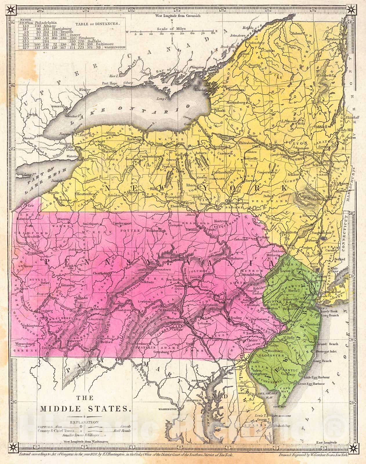 Historic Map : 1838 The Middle States : Vintage Wall Art