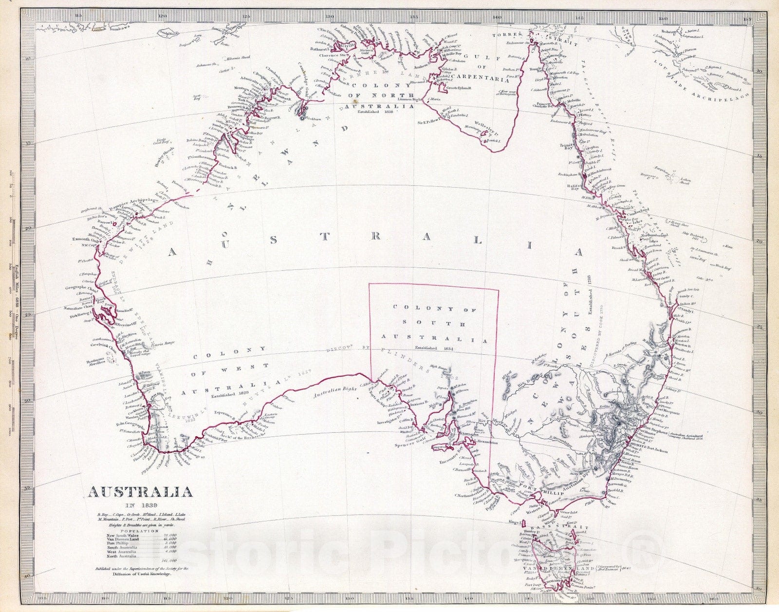 Historic Map : 1840 Australia in 1839. - Vintage Wall Art