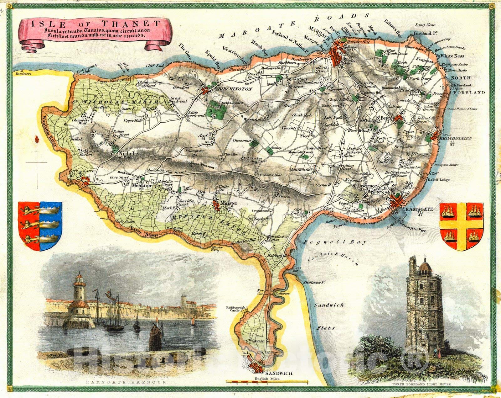 Vintage Map | 1840 Isle of Thanet | Moule, Thomas
