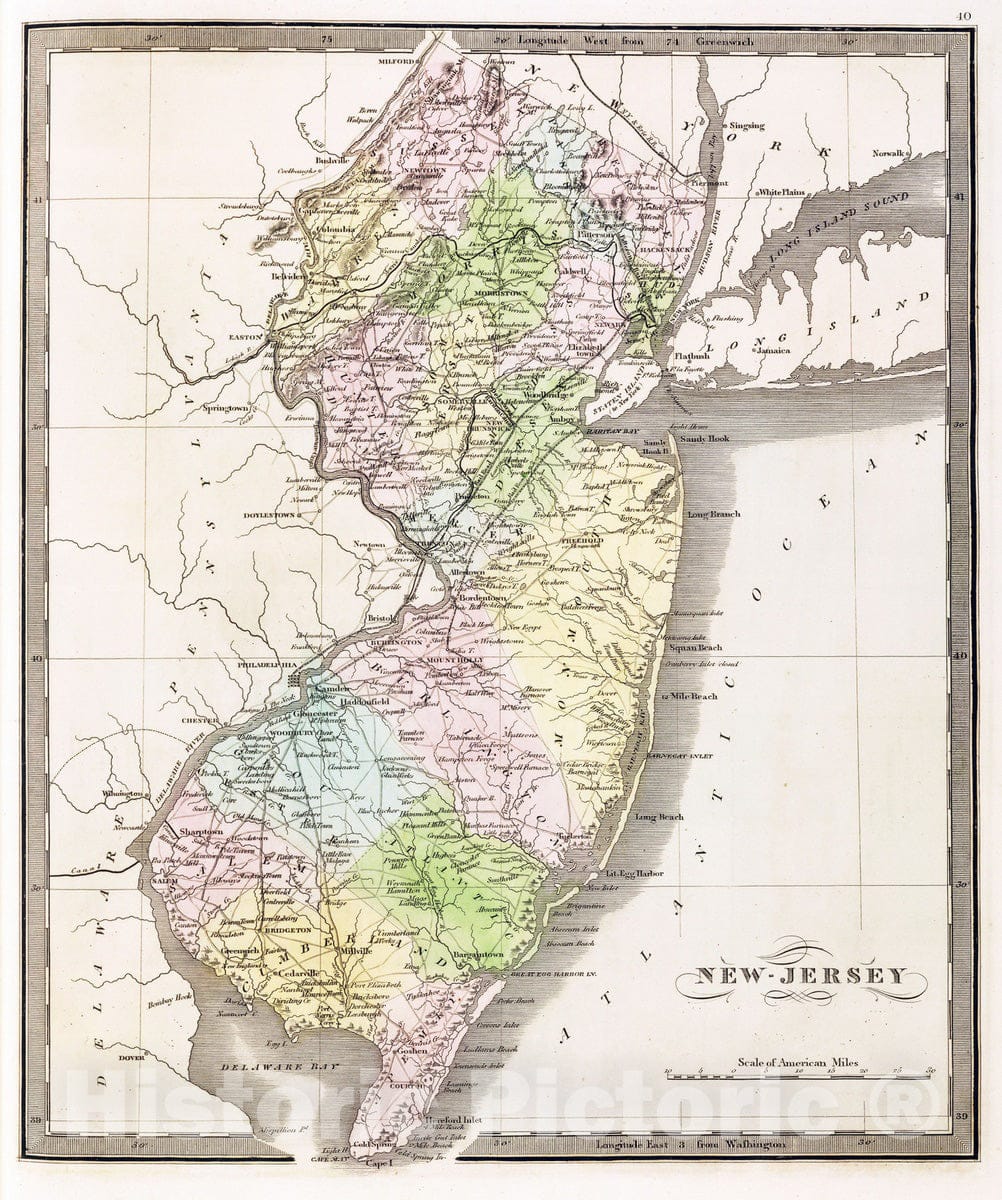Historic Map : 1848 New-Jersey. - Vintage Wall Art