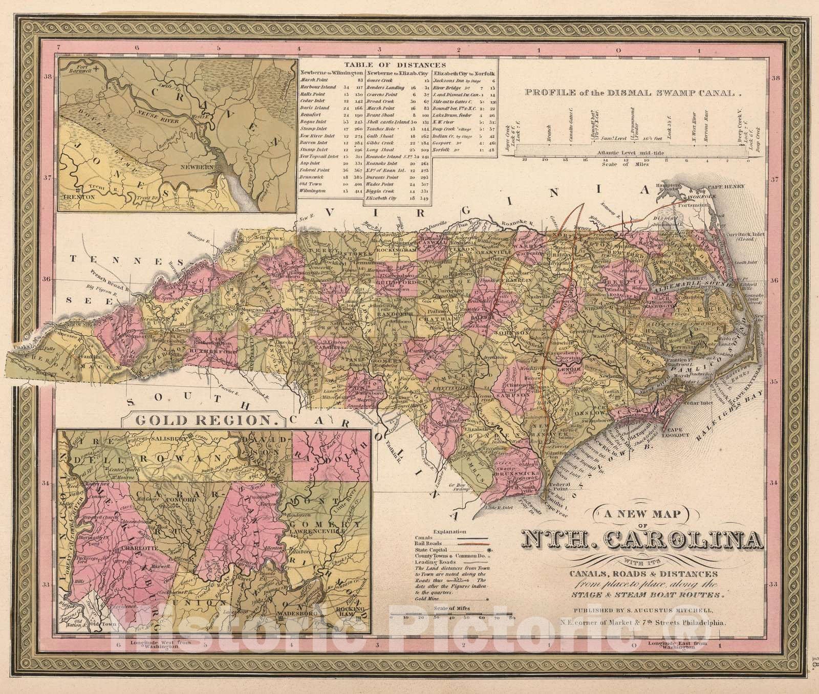 Historic Map : 1850 North Carolina. - Vintage Wall Art