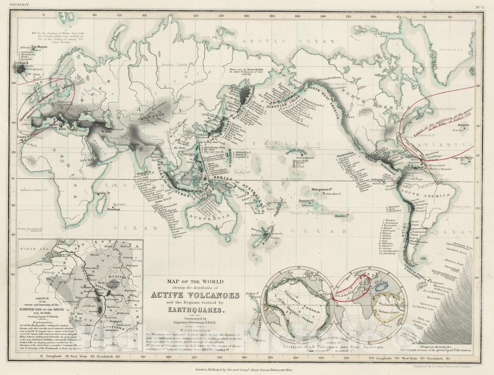Historic Map : 1850 World Active Volcanoes and Earthquake Regions. - Vintage Wall Art